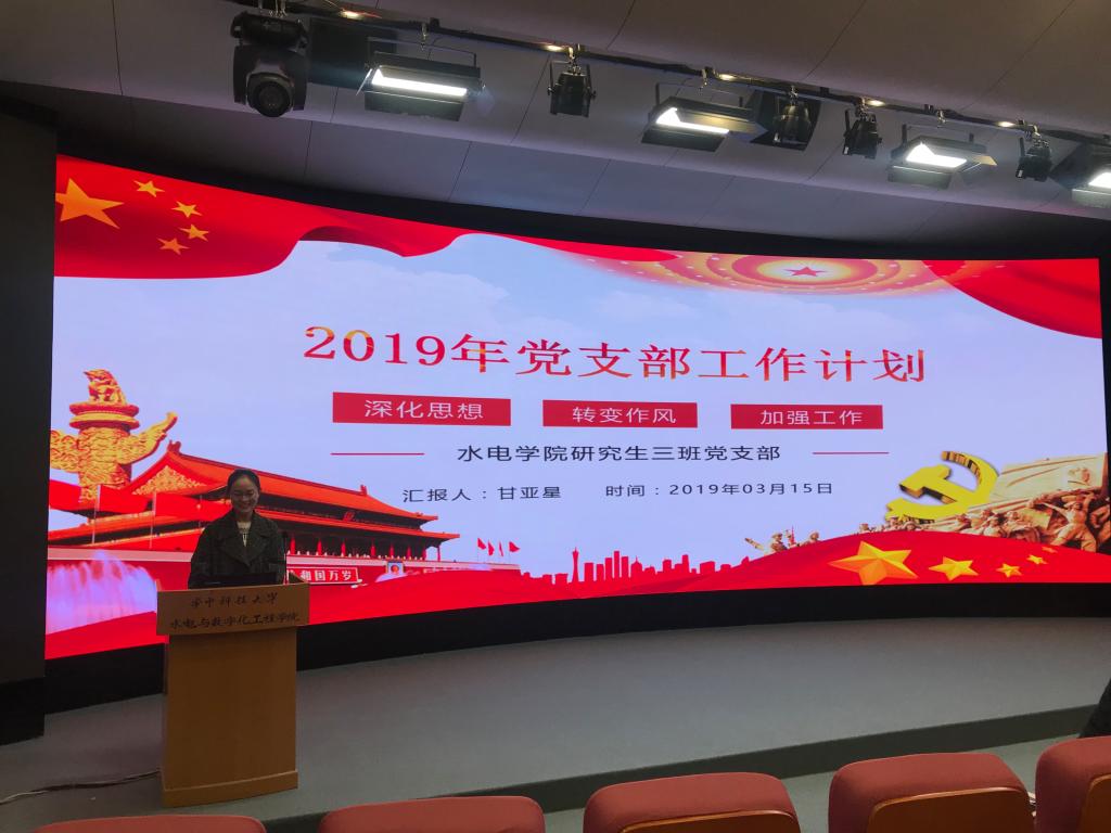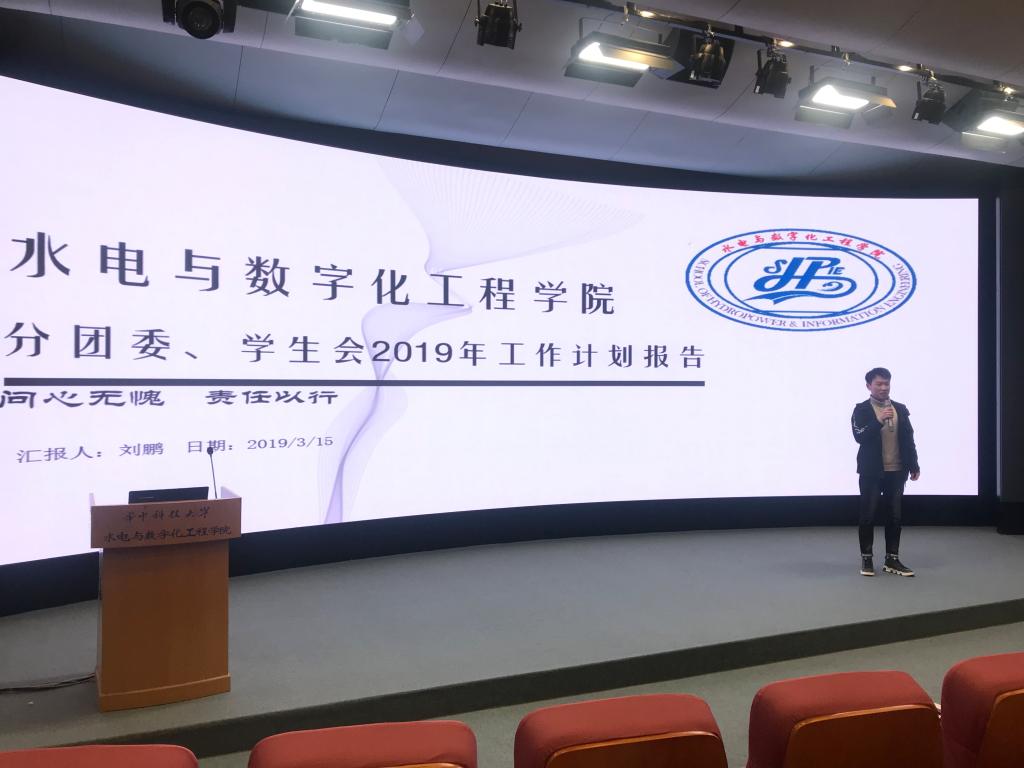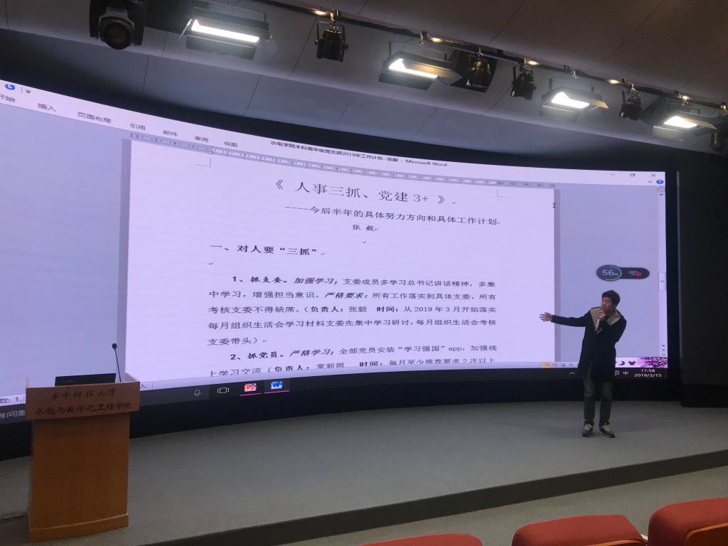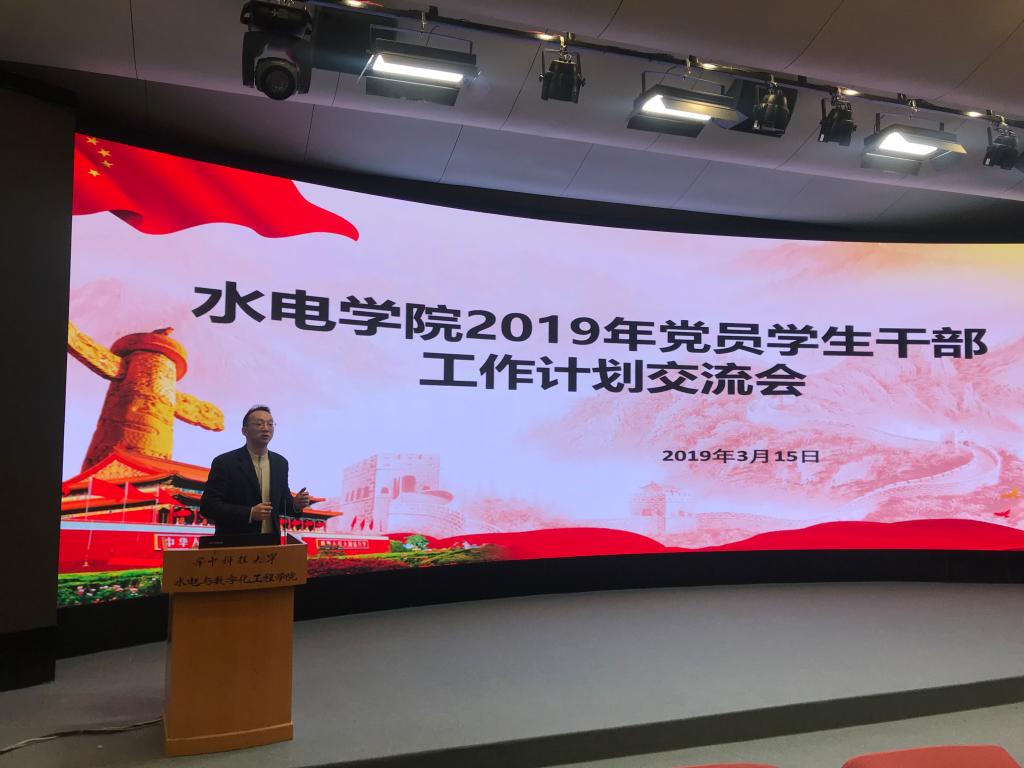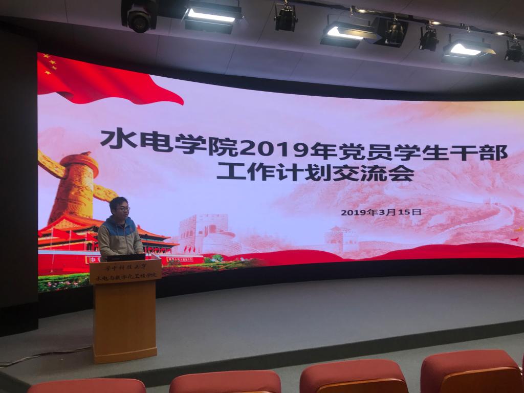 2019年3月15日下午4时,首届水电公司2019年党员员工干部工作计划交流会,在水电能源仿真中心三楼报告厅举行。党建辅导员张建主持。公司党委书记杨海斌、副书记谢倩、研究生辅导员张誉千和本科生辅导员齐小静,以及各党支部书记、支委、研会主席团与本科员工会主席团参加了本次活动。