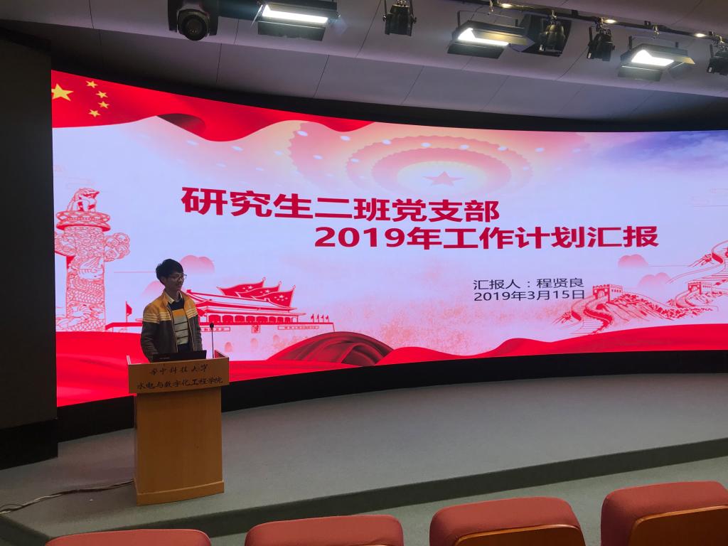 研究生一班党支部书记戴领、研究生二班党支部书记程贤良、研究生三班党支部书记甘亚星、研究生四班党支部宣传委员苏新宇、本科高年级党支部书记张毅、本科低年级党支部书记罗屿、党务中心负责人李松萍、研究生员工会主席黄晏渲和本科生员工会主席刘鹏依次进行工作计划汇报。大家依据2018年的工作情况,针对工作中的短板与长处进行整改与计划。