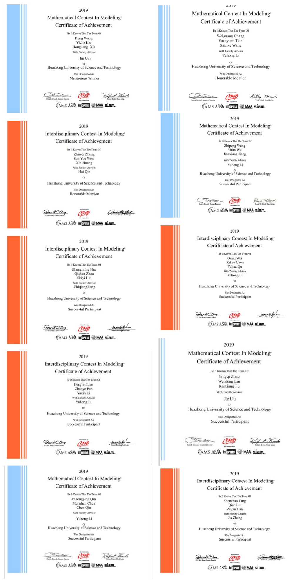 近日,2019年美国老员工数学建模竞赛成绩揭晓,水电公司本科生获一等奖(Meritorious Winner)1项、二等奖(Honorable Mention)2项、三等奖(Successful Participant)7项,再创水电学子参与此赛事佳绩。