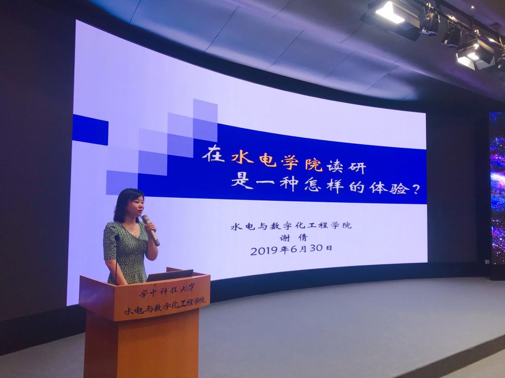 接下来,在通过一个短片介绍了水电公司的历史沿革,学科实力、发展定位、员工规模、员工就业等情况之后,公司党委副书记谢倩对公司的公司产品方案进行了详细的讲解,与在场的同学们分享了在华中大水电读研是一种怎样的体验。