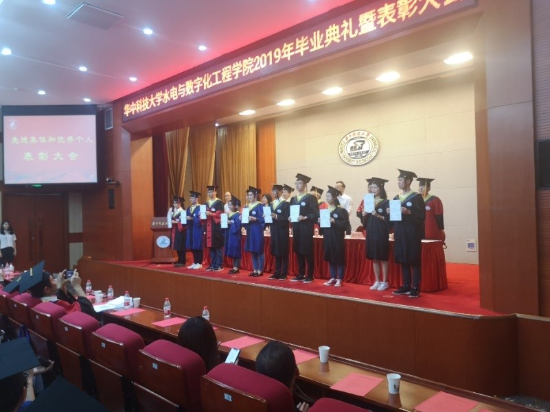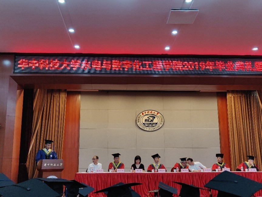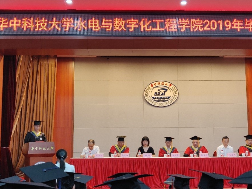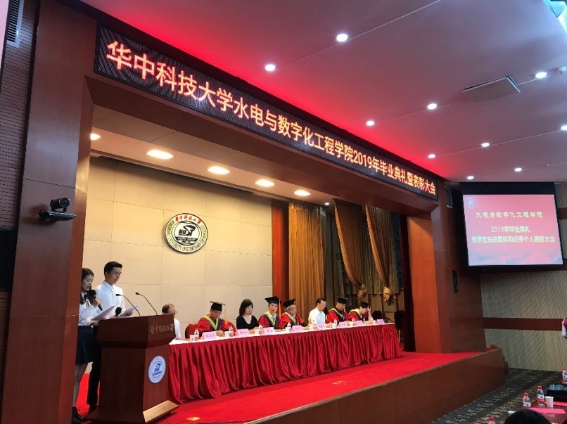 2019年6月18日晚7点,水电与数字化工程公司2019年毕业典礼暨表彰大会在一号楼报告厅成功举办。张勇传院士、经理周建中,党委书杨海斌,副经理徐学军,副书记谢倩,经理助理黎育红、朱文杰,工会主席陈璐、康玲教授、王金文教授、付必涛副教授、刘懿讲师参加了本次活动,与近200名毕业生共同度过了难忘的时光。