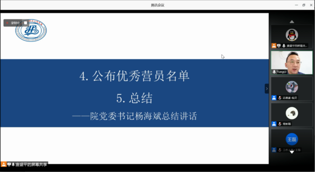 随后,杨书记公布了优秀营员名单并做总结讲话。希望同学们能有所收获,并激励营员们:“每个人都应该志存高远,树立远大理想抱负,有鸿鹄之志。欢迎来校攻读研究生,期待在水电公司相遇!”