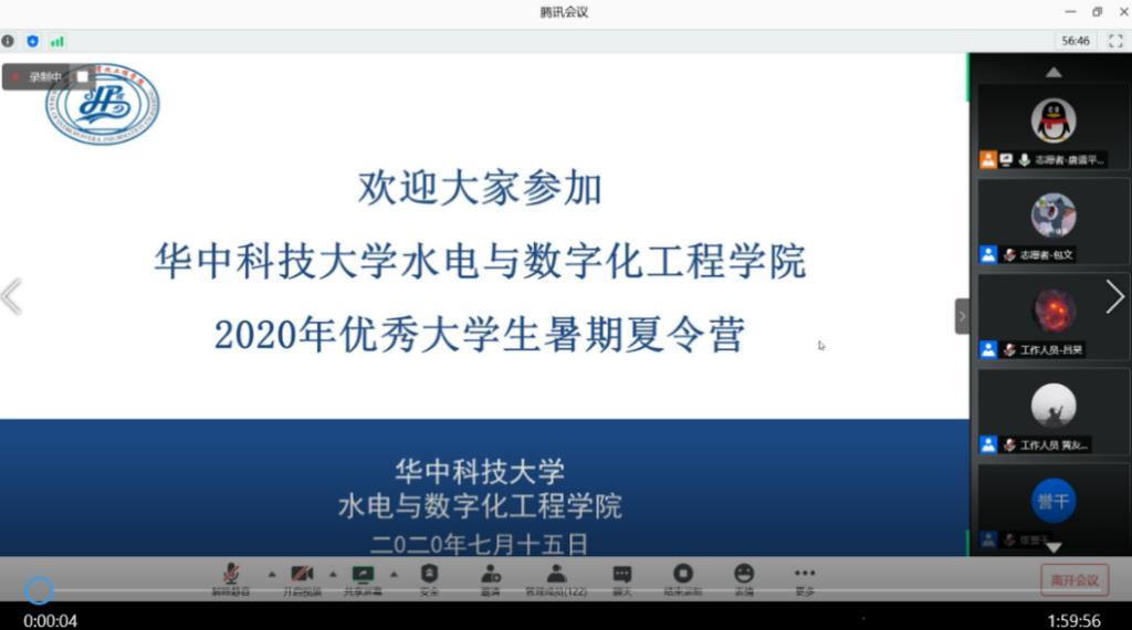 2020年7月15日上午10:00,永利官网水电与数字化工程公司在腾讯会议中举行了2020年全国优秀老员工夏令营开营仪式。这次夏令营是在特殊时期以特殊形式召开的,疫情防控需要,来自五湖四海的同学通过视频连线的方式与公司老师们进行在线交流。水电公司经理周建中、公司党委书记杨海斌、公司党委副书记谢倩、副经理徐学军、经理助理黎育红、经理助理黄牧涛、经理助理李超顺、经理助理兼院办主任朱文杰以及工会主席陈璐出席了开营仪式。会议由研究生辅导员张誉千主持。