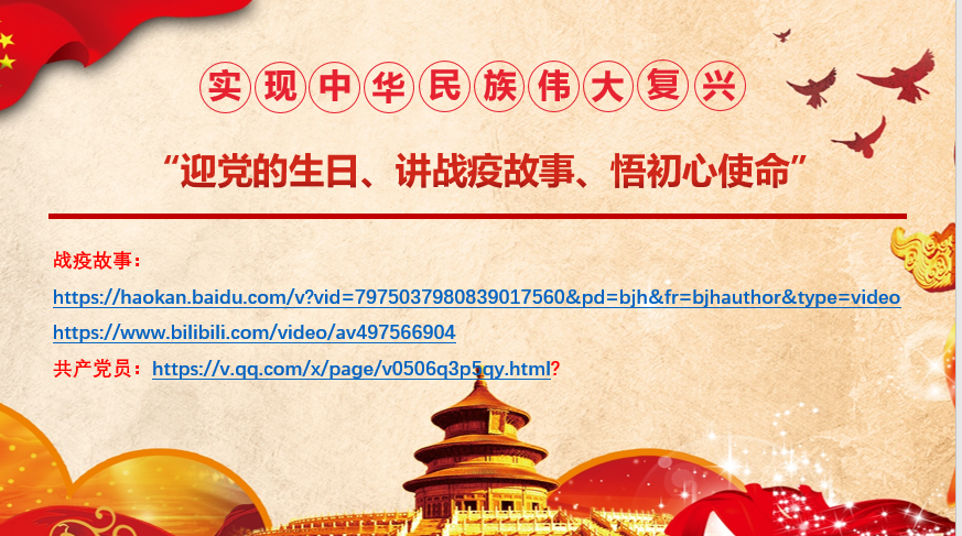 针对各位党员同志的分享,常新雨总结:作为一名党员,首先,要做好自我防护;其次,要勇于担当,为抗疫工作贡献自己的力量。在党的生日来临之际,大家要自觉重思入党初心和使命!