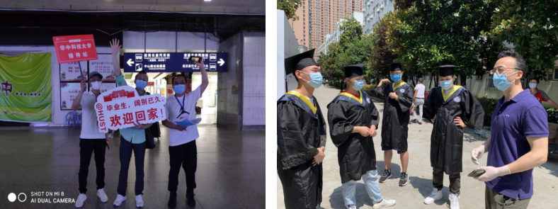 毕业生返校期间,公司党委杨海斌书记带队领导干部先后在武昌火车站、员工宿舍迎接员工,公司党委副书记谢倩定点南大门,并往返与各点衔接、处理相关事务,辅导员全员全天候在宿舍区值班,为毕业生提供一站式办理离校手续的服务,并认真落实在校毕业生每天晨午晚“三测温”和“一日一报”制度,确认每一位毕业生安全在校,安全离校。