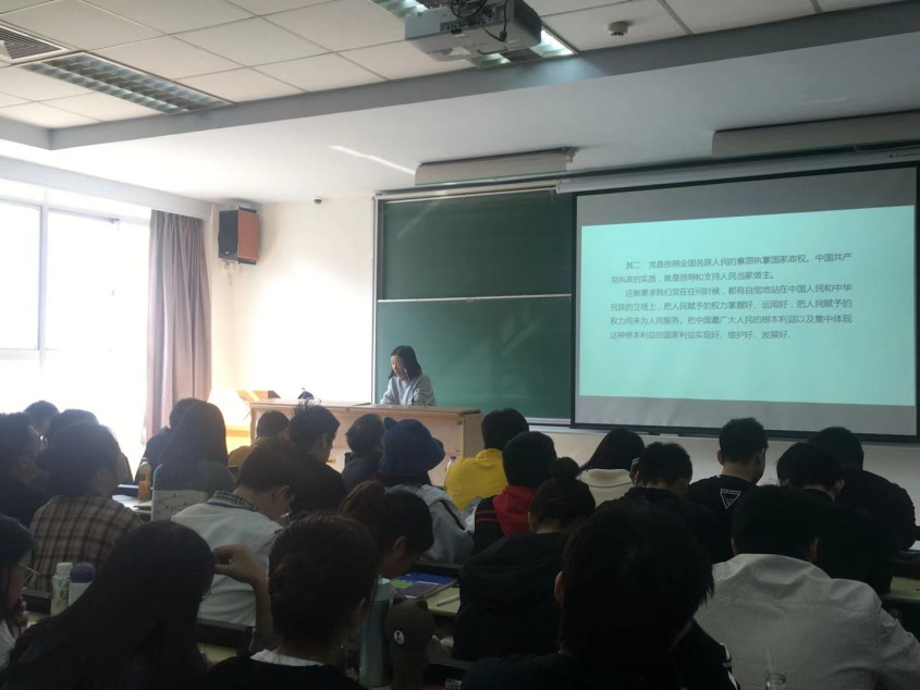 吕洪良以《中国共产党的纲领》为主题,由入党誓词引入,从什么是党的纲领、坚持党的最高纲领、坚持党的最低纲领等三个方面,进行了详细的讲解。鼓舞大家树立起“四个自信”,并寄语同学们“让理想照亮现实,用理想引领未来!”