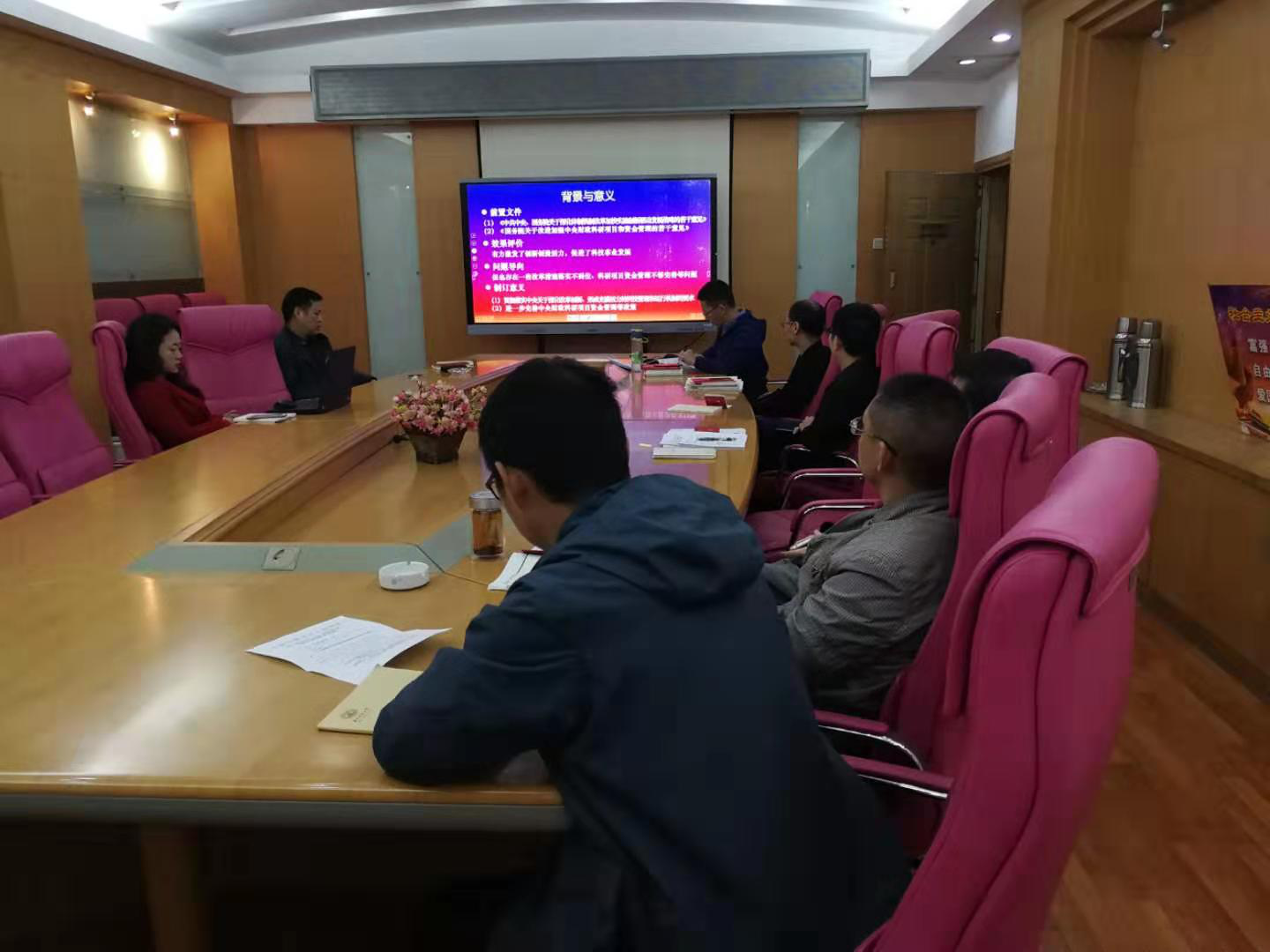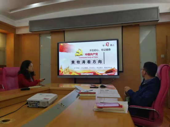 2019年10月31日上午,在仿真中心三楼会议室,水资源教职工全体党员过了一次组织生活会。组织关系在水资源支部的领导干部,分管科研、纪委专员徐学军,经理助理黄牧涛、经理助理、支部书记黎育红讲授了“不忘初心、牢记使命”主题教育专题党课,并在会上听取了大家的意见建议,检视反思。