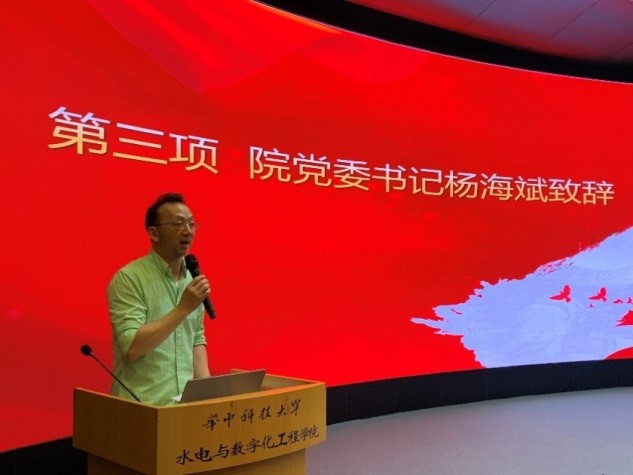 水电公司党委书记杨海斌首先介绍了华中大是怎样的大学,强调了社会主义办学方向,阐述了“四个服务”。引导研究生新生关注国情、世情、社情,讲解了国际形势和热点,教育引导大家珍惜时光、强身健体,梳理远大理想,立志报效祖国。