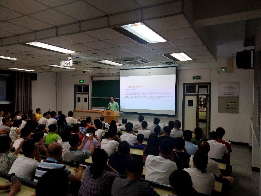 2019年8月30日傍晚,公司党政领导一行集体“走近新生”公司党委书记杨海斌讲授以“用青春拥抱华中大 明明白白地学习”为专题的思政课。