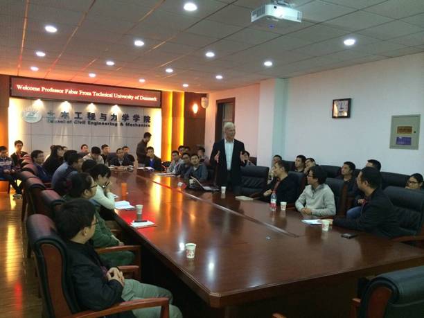 下午,Nielsen教授在公司三楼会议室做了题为“ 结构健康监测中的信息价值”的学术报告,公司有教师、研究生共50多人参加。在报告中,Nielsen教授以结构健康监测为例介绍了工程决策、常规处理方法、问题的本质、科学的解决方法及该领域未来的一些挑战。最后,Nielsen教授列出了一些结构健康监测领域国际前沿探讨的问题,供大家学习交流。报告引起与会师生的极大兴趣。在会后的互动交流环节,在座师生就结构健康监测领域相关问题竞相发言提问,Nielsen教授一一回答。会后有员工与Faber教授单独交流,讨论结构健康监测研究及赴海外留学的相关问题。