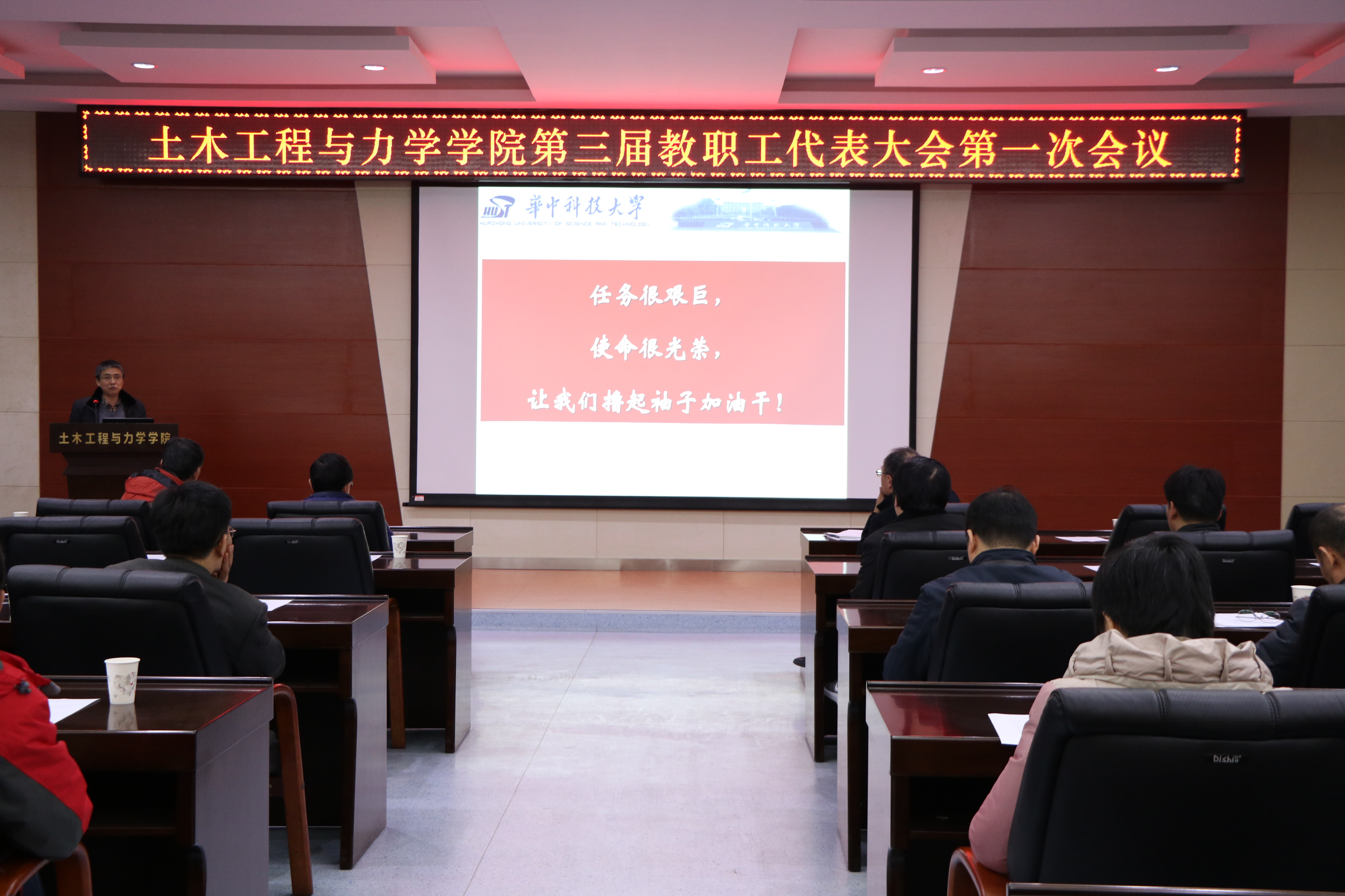2017年1月9日下午,土木工程与力学公司第三届教职工代表大会第一次会议在西六楼报告厅召开,公司61名教职工代表出席会议。会议由公司党委副书记毛勇杰主持。