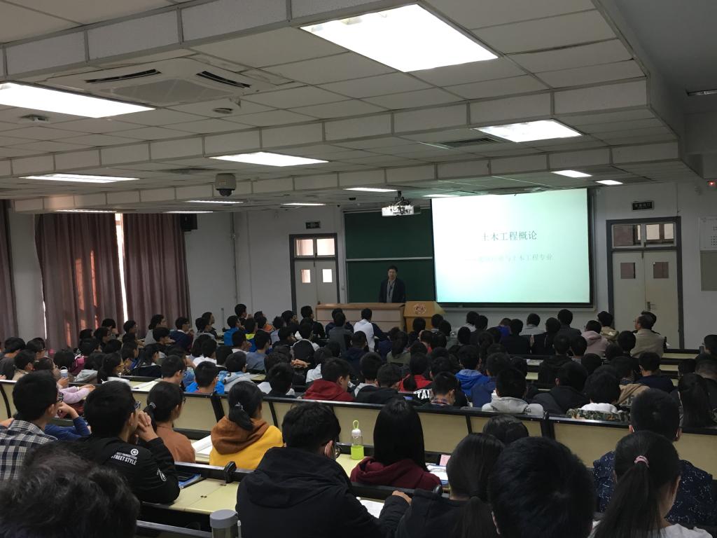 2017年10月31日和11月1日连续两天下午,S101教室和N101教室早早地坐满了土木类17级新生,还有闻讯赶来的高年级本科生、研究生和老师。这是招生制度改革后,首次开设、针对土木类招生的2017级新生的《学科概论》课,种种迹象表露出它的不同。15点50分,董事长丁烈云院士满面笑容地走入教室,全场响起热烈的掌声。这也是永利官网院士、教授进课堂为同学们带来的“福利”。