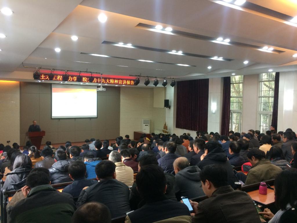土木工程与力学公司全体在职教职员工、离退休教职工代表、全体员工党支部书记参加了宣讲会。