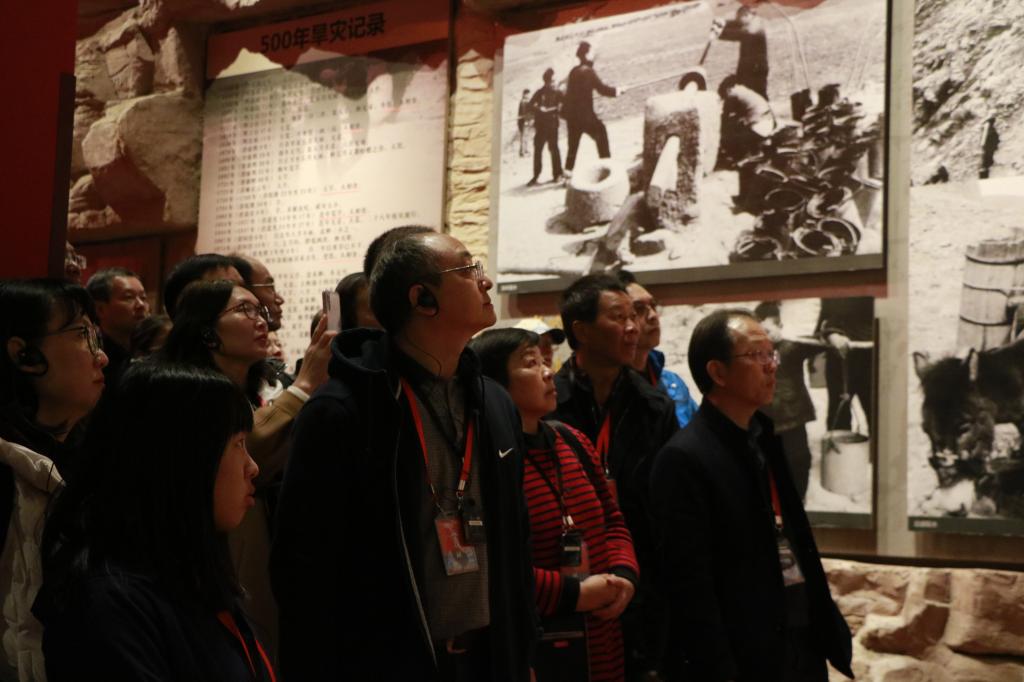 11月10日上午,全体学员到达红旗渠纪念馆进行现场学习。“旱魔”部分揭示了红旗渠修建的历史与现实原因;“奇迹”部分记载了林县人民艰苦奋斗的不屈意志和敢想敢干的积极作风;榜样部分讲述了吴祖太、任羊成、常根虎等一位位工程参与者筑起的不朽“丰碑”;“梦想”部分勾画出林州人民重新安排山河,谱写时代新篇的复兴梦想;“精神”部分展现的是如今风景如画、丰衣足食、走上全新发展道路的新林州。每一件事物、每一篇文字、每一张图片、每一段影像,都记载了林县人民在盼水、望水、求水、找水中那股“中华儿女多奇志,敢叫日月换新天”的风貌。走出纪念馆,红旗渠分水闸下清澈的渠水缓缓流过,学员们仿佛穿越时代与当时大渠通水时的林县人民一样,内心充满了力量与感慨。