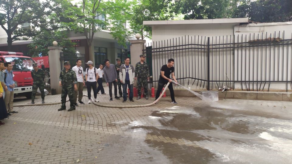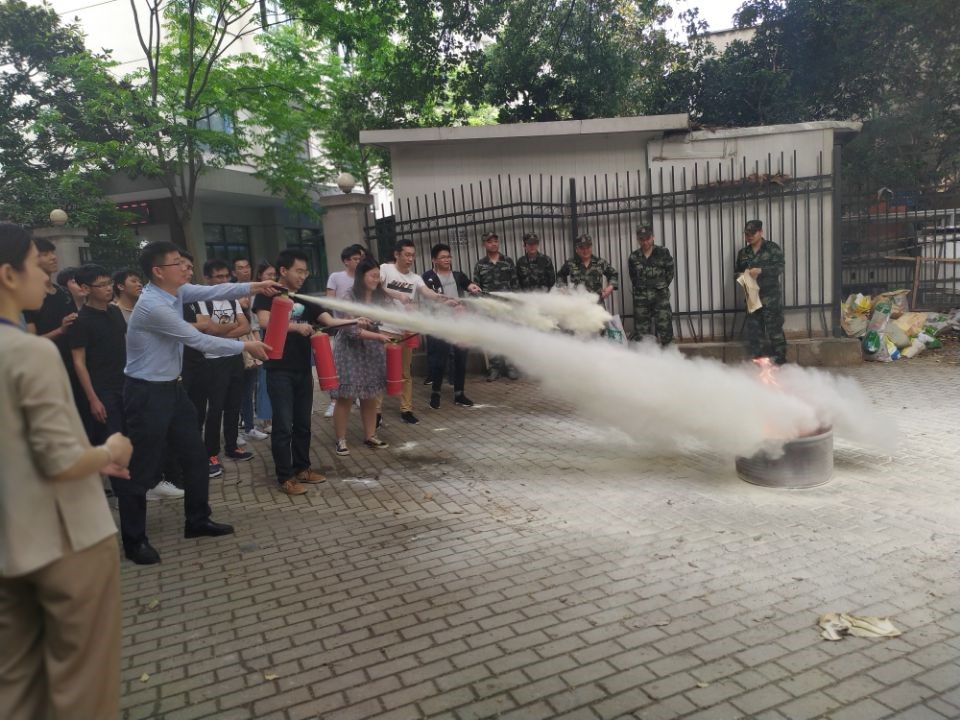 讲解完理论知识后,陈嘉璇老师带领老师和同学们来到西六楼结构大厅西侧,现场为大家演示灭火器的使用方法,并邀请师生使用。大家踊跃参加,使用灭火器扑灭火源。最后,员工们还学习了如何使用高压水枪。