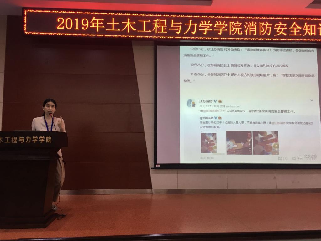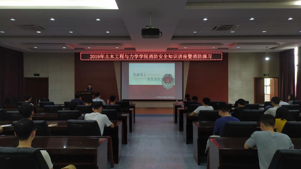 (通讯员:苏前威)为了让师生进一步了解消防安全知识,提高师生的消防安全意识并加强在火灾发生时的互救自救能力,2019年4月25日下午两点半,土木工程与力学公司于西六楼五楼报告厅举办了消防安全知识讲座暨消防演习。此次讲座由何春副书记主持,校保卫处治安与消防管理科陈嘉璇老师主讲,研究生辅导员邵太康、本科生辅导员闫俊宇、蔡海洋、丁琪皓及各实验室、工作室的老师和研究生代表参与本次讲座。