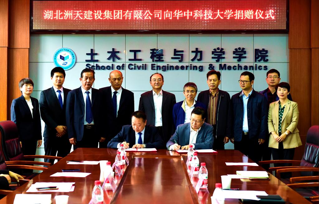 10月22日上午,湖北洲天建设集团有限公司向公司捐赠仪式在土木工程与力学公司举行。湖北洲天建设集团董事长刘金华、总工程师刘敬甫、校教育发展基金会秘书长李志强、土木工程与力学公司经理李振环、副经理高飞、副书记何春及洲天建设集团相关负责人、校教育发展基金管理处、公司师生代表参加了仪式。仪式由公司党委书记李斌主持。