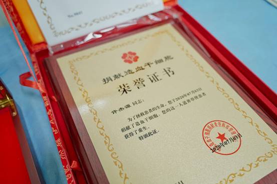 当日,湖北省红十字会党组成员陈波主任一行、公司党委副书记何春一行,与骨髓库负责人姬虎主任、业务负责人邓坤娥以及中南医院袁玉峰副经理一同看望了捐献志愿者许杰源。现场,省红会党组成员陈波主任为许杰源颁发造血干细胞捐献纪念证书和奖章。