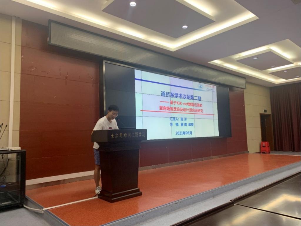 在第二期学术沙龙中,施洋博士后开展了以“基于KiK-net地震记录的竖向场地反应及设计反应谱研究”为主题的讲座,其研究主要基于日本KiK-net地震动观测记录以及已有水平地震动研究成果,开展竖向线性场地反应、竖向非线性场地反应、场地泊松比的原位特性与竖向设计反应谱四方面研究,旨在揭示竖向场地反应的部分机理及竖向设计反应谱的统计规律,以期为建筑物的竖向抗震设防提供参考。