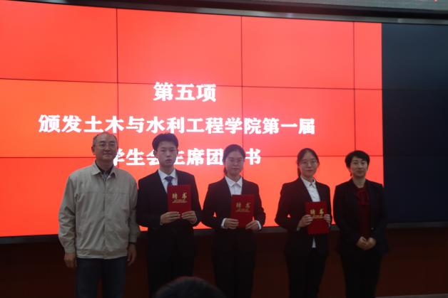 随后,李斌老师和何春老师为第一届员工会主席团颁发聘书,并合影留念。