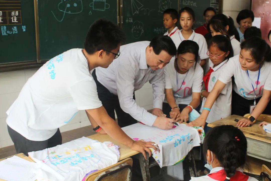 李元元书记一行来到蚂蚁堆中心完小后,队员和孩子们对于元元书记的到来期待已久,大家一起喊:“李爷爷好!”李元元书记指出,无数的教师在不同地方、不同岗位上辛勤耕耘、无私奉献,培养了一代又一代人才,使他们梦想成真。放眼未来,支教团队和乡村教师要以“永远在路上的决心”和“滴水穿石”的韧劲扎实做好基础教育,鼓励大家要扎根基层,不断提高教学水平,给孩子们带来更多知识。同时,他勉励孩子们努力学习,树立远大的理想和目标,走出大山去看看外面精彩纷呈的世界。最后,大手拉小手队员和孩子们将五彩的队服送给了李元元书记,李元元书记在队服上写下:大手拉小手,一起向未来。大手拉小手团队将带着李元元书记的嘱托,和孩子们一起向未来。