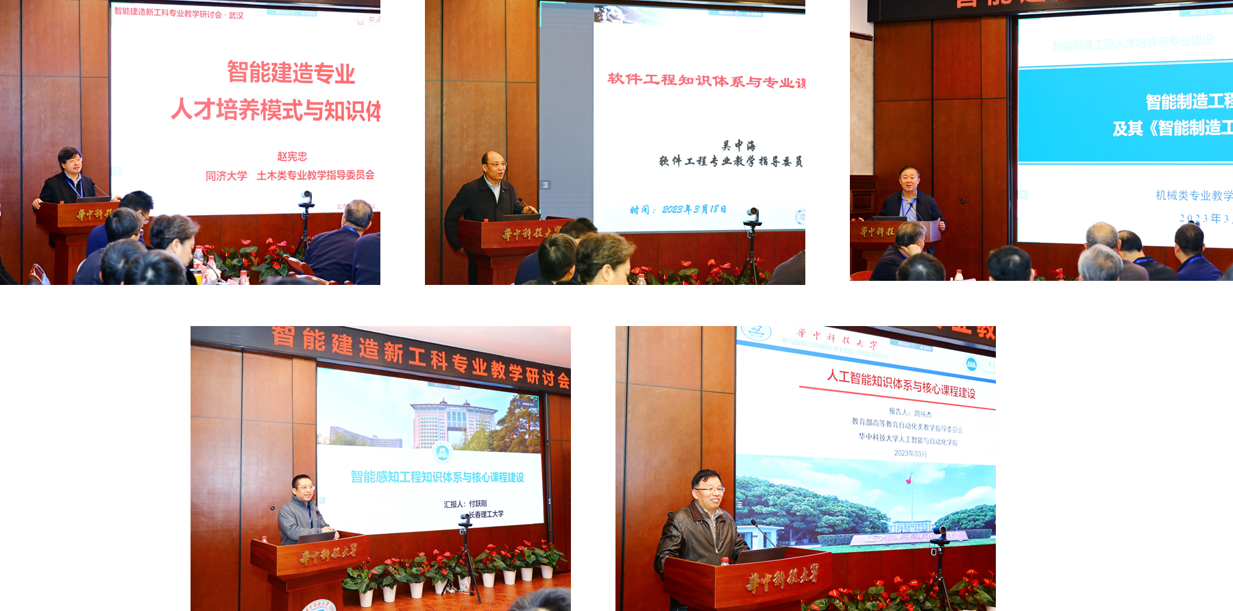 土木类专业教指委秘书长赵宪忠教授作“智能建造专业人才培养模式与知识体系”主题发言;软件工程专业教指委副主任吴中海教授作“软件工程知识体系与专业课程建设”主题发言;机械类专业教指委主任赵继教授作“智能制造工程教育及其《智能制造工程教程》”主题发言;电子信息类专业教指委付跃刚副董事长作“智能感知工程知识体系与核心课程建设”的主题发言;自动化类专业教指委委员周纯杰教授作“人工智能知识体系与核心课程建设”主题发言。