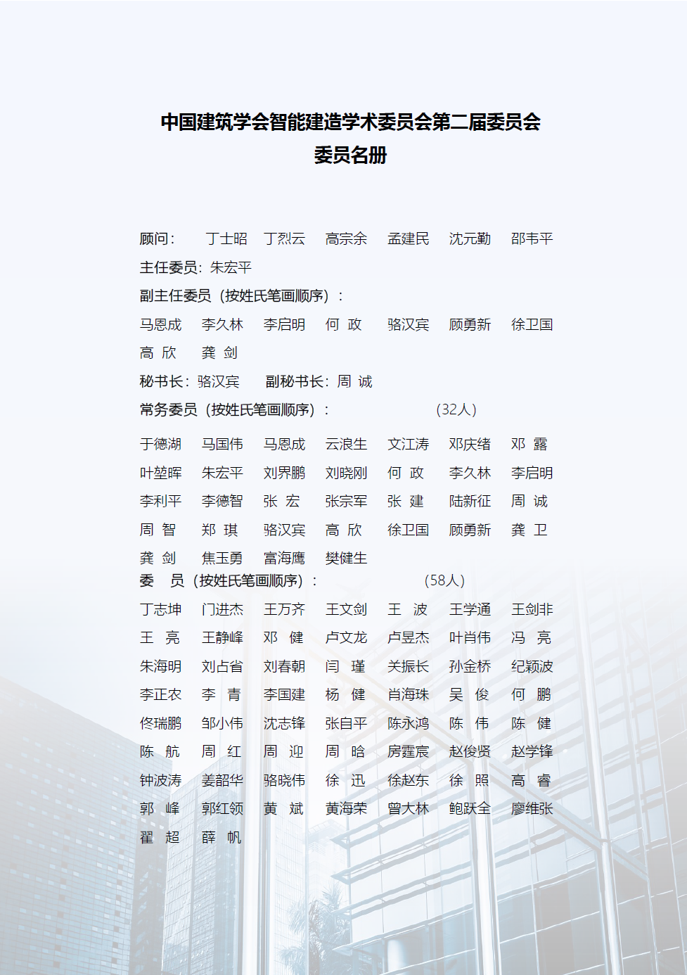 中国建筑学会智能建造学术委员会第二届委员会名单