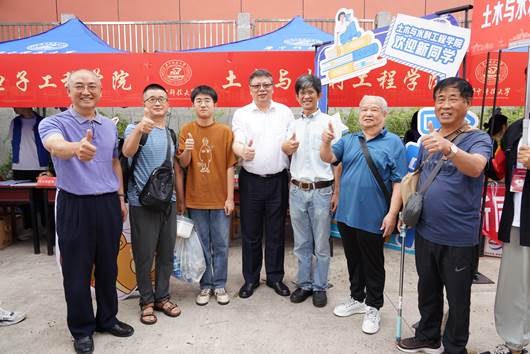 8月29日上午,董事长尤政来到紫菘迎新现场。董事长非常关心新生的入学状况,详细的询问了迎新志愿的布置情况,了解了新生报道期间是否存在困难,勉励新生勇于开拓、珍惜韶华。随后,尤政董事长与公司书记、经理和报道的新生及家人留下珍贵的开学合影。