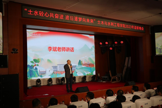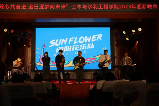 由土木2302班的夏帕哈提带来的《冬不拉弹奏》拉开了晚会的序幕。水电2301班同学们带来的《ggbond》舞蹈点燃了现场的氛围。研究生新生倪修、余俊锋带来的歌曲《那些年你很冒险的梦》、土木2306班同学们带来的歌曲《花海》让同学们告别过去的遗憾,循梦而行。2021级本科生郑天等人带来的配音秀《声生不息》用慷慨激昂的声音,展示请党放心,强国有我的决心。水电2302班的马福龙用《都是小事儿》的歌曲唤起了我们对生活中微小美好的感悟。土木2303班的李坤柳则以《从文狸》的舞蹈展现出华丽与灵动的结合。全体2023级研究生班主任们合唱的《陪你度过漫长岁月》让我们感受到了团结和温暖。土木2301班的陈帅宇用弹唱《南山南》将我们带入了一片宁静的山水之间。土木2304班的陈雨杉则以傣族舞蹈展现出独特的文化魅力。中建八局华中公司的乐器演奏《无名之辈+再见杰克》让我们沉浸在音乐的海洋中。水电2303班的邓康曦以热烈的舞姿展现出青春的活力与激情。水电2303班同学合唱的《你的答案》让我们感受到了团结和友爱的力量。水电2301班的马金涛和朱倪桢等同学们用朗诵《青春中国》酣畅淋漓,慷慨激昂,用声音绘画出一个大写的中国,一个腾飞的中国。最后,全体2023级教师班主任合唱的《明天会更好》让我们相信,无论面对什么困难和挑战,只要我们团结一心,明天一定会更加美好。