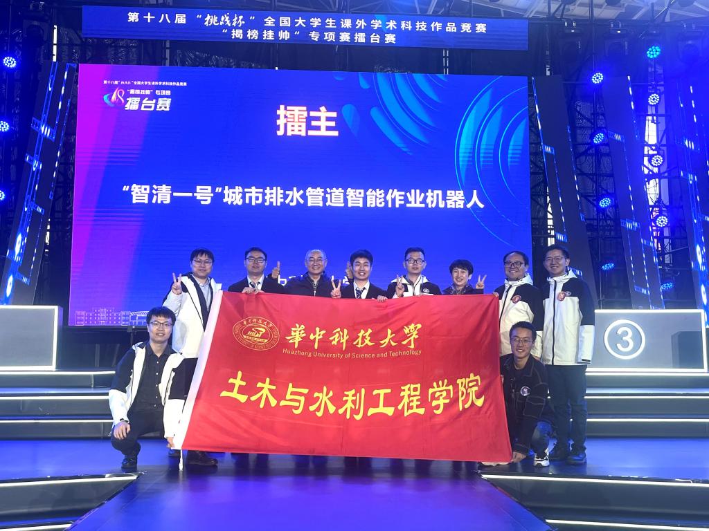 本专项赛以“城市排水管道智能作业机器人系统研究”为题,面向高校广发“英雄帖”,吸引了来自全国各地50余所高校的83支团队揭榜打擂。榜题发布后,公司迅速组建团队开展考察和研发工作,成功完成“智清一号”机器人系统设计及样机制作,实现机器人在管道内“走得稳”、“测得准”、“传得快”、“清得净”的榜题要求。并在初赛、终审决赛中过关斩将,获终审决赛特等奖(全国5支队伍),经过激烈的角逐,最终在专项赛擂台赛中获擂主。