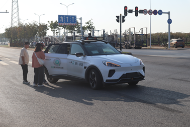 (老师同学们体验自动驾驶出租车)