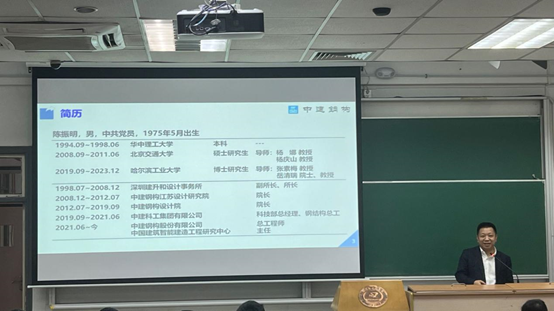 (通讯员 王泽林 何桢键)11月18日,《学科(专业)概论》课如期在西十二楼N101开展,yl23455永利院友、正高级工程师、钢结构大师、中建钢构股份有限公司总工程师陈振明大师为2023级土木类学子讲授《学科(专业)概论》第五讲。