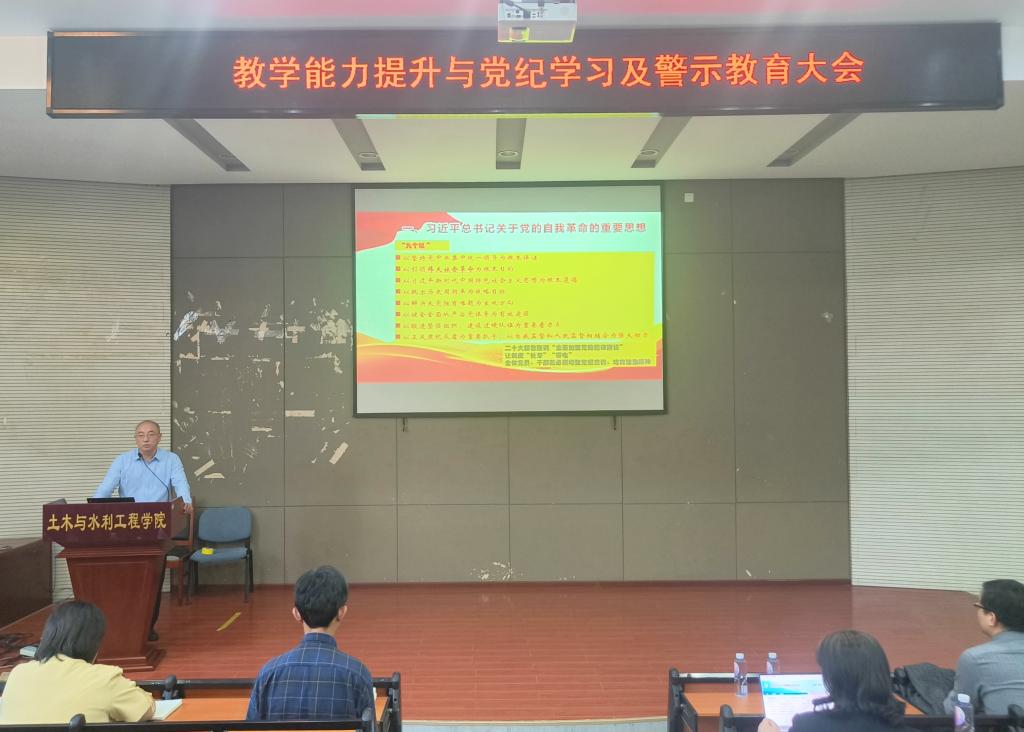 为统筹党纪学习教育与落实党中央重大决策部署相结合、与巩固拓展主题教育成果相结合、与完成本年度重点任务相结合、与党员基本培训工作相结合,两手抓、两不误、两促进,5月9日,公司党委在南二楼报告厅组织召开教学能力提升与党纪学习及警示教育大会,会议由公司党委书记李斌主持,全院在校教职工、博士后、骨干社聘人员参加了会议。公司党纪学习教育工作第十二联络组组长孔姝、联络员宋俊全程参与,刘华北经理强调全体教师应高度重视教学工作。