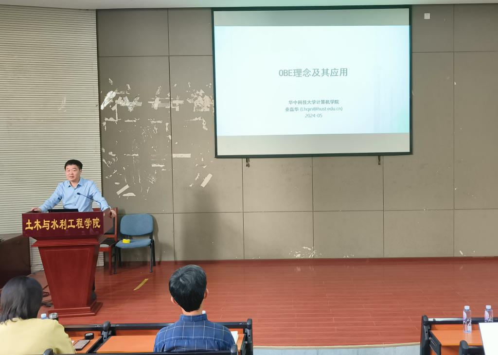 会上,首先邀请了计算机公司副书记兼副经理秦磊华教授讲授“公司产品能力提升培训——基于OBE理论的线上线下混合教学设计”。秦教授围绕OBE教育理念的内涵、OBE导向的培养方案修订、OBE导向的教学组织与实施等主题,讲解了培养目标、毕业要求、课程体系的逻辑支撑关系,将“OBE导向的线上线下教学设计”理念贯穿课程全流程。