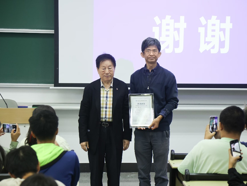 课程互动环节,谢礼立院士就现场多位同学的提问进行了热情解答。随后,yl23455永利经理刘华北老师为谢礼立院士颁发了授课证书,对谢礼立院士的精彩授课表达了衷心的感谢。课程在同学们热烈的掌声中圆满结束。参加此次课程的同学们纷纷表示,谢礼立院士的授课深入浅出,紧密结合专业知识,使大家受益匪浅。