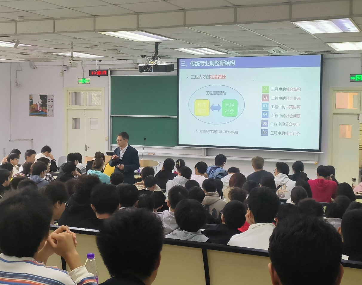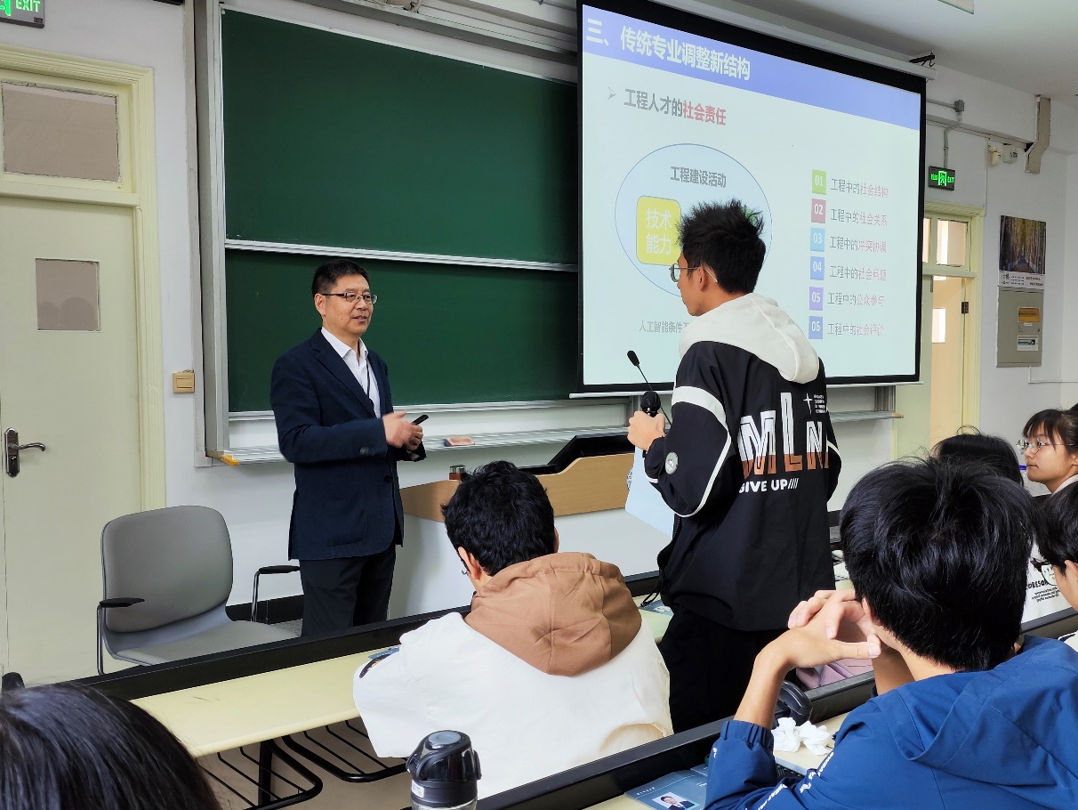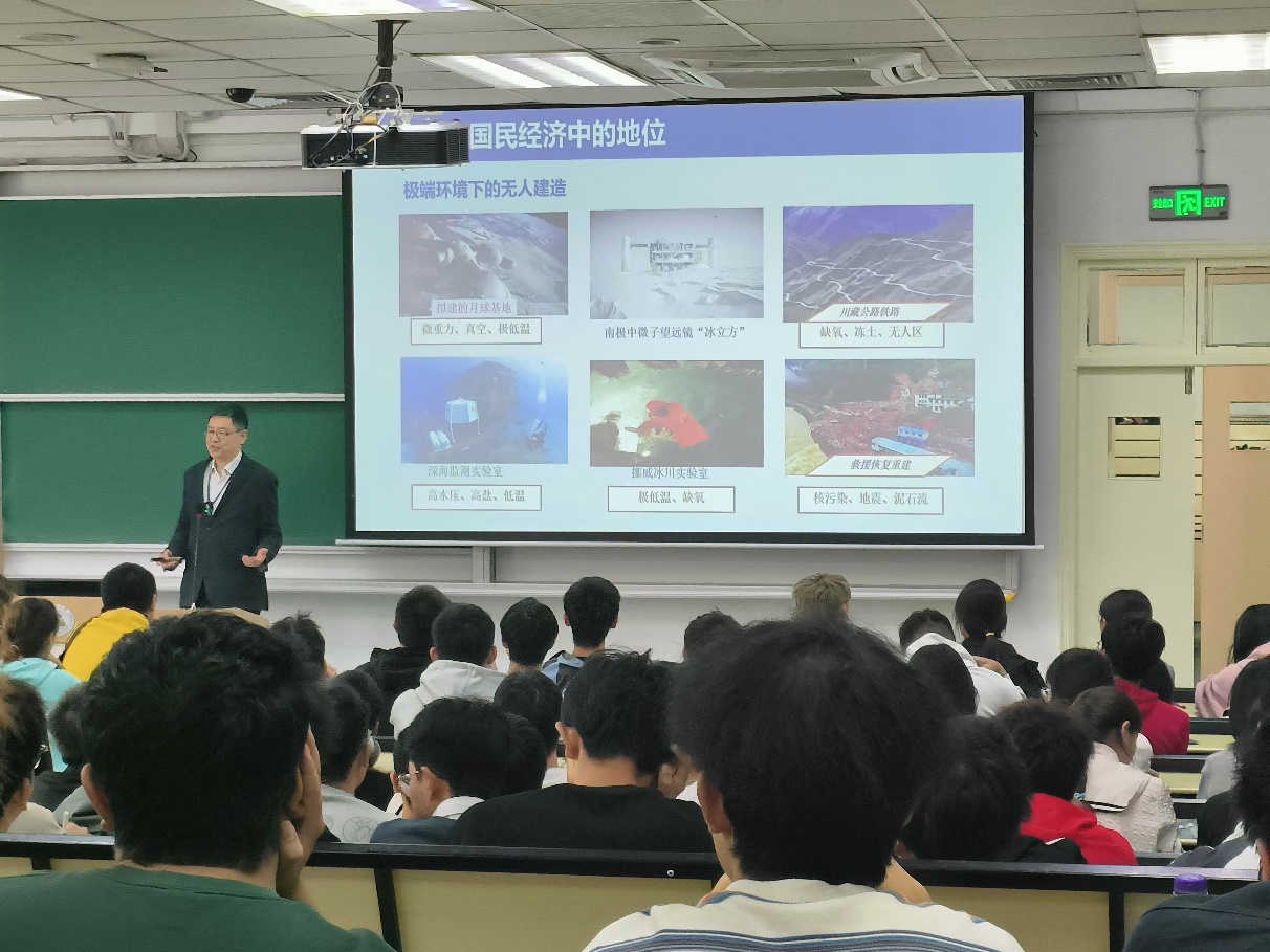 2024年11月2日上午,《学科(专业)概述》课程如期在西十二楼N112开展。中国工程院院士丁烈云以“智能建造与人才培养”为主题,向2024级土木类学子展开讲授。