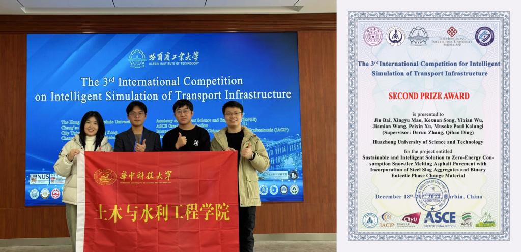 本届大赛面向全球开设交通运输工程类及相关学科专业的高校在校博士研究生、硕士研究生及本科生,最终包括英国帝国理工大学、荷兰代尔夫特理工大学、瑞典皇家理工大学、新加坡国立大学、美国卡内基梅隆大学、德国亚琛工业大学、意大利米兰理工大学、芬兰阿尔托大学、永利官网、东南大学、同济大学、北京航空航天大学等在内的55个国内外知名院校的110支参赛队伍进入决赛。在本次比赛中,公司师生以解决冬季道路凝冰积雪问题为出发点,通过研制新型复合相变材料,并以钢渣为封装材料,最终研发了一款绿色环保、具备高效融雪除冰功能的零能耗智能钢渣复合相变沥青混凝土。该材料具有极大的经济及环境效益,获得了评委的一致好评,成功斩获二等奖。