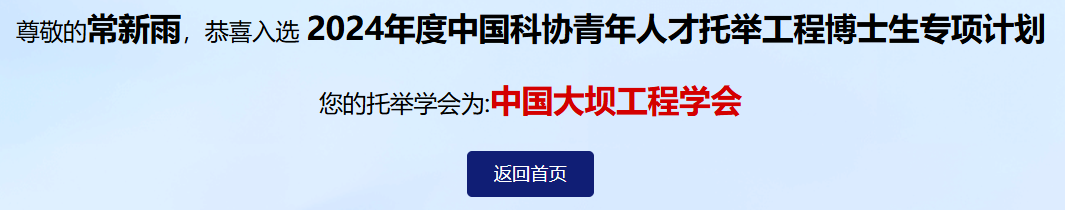 近日,中国科协办公厅公布2024年中国科协青年人才托举工程博士生专项计划入选者名单,公司博士生陈超(导师:张立茂教授)、博士生常新雨(导师:覃晖教授 郭俊副教授)入选该专项计划,入选博士生将在拓宽学术视野、增强学术锻炼、加快学术成长等方面获得专项支持。