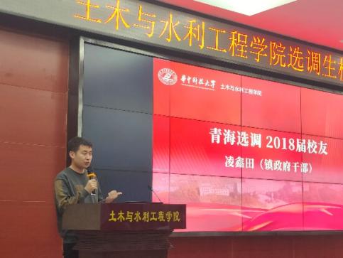 首先,2018届投身青海选调员工凌鑫田与大家分享了自己青海选调的心路历程以及工作6年来的经历和体会。凌鑫田强调我们青年员工要坚持学“识”,只有融入当地文化、深入了解基层,才能更好地服务人民、奉献基层;要坚持学“事”,办文办会办事是体制内最基本最重要的能力,需要丰富的经验和知识储备来支撑;要坚持学“势”,准备在先就能占据主动,只有把握工作大“势”,才能掌握工作主动权趋势的势。最后,凌鑫田师兄鼓励同学们摆脱冷气、发光发热,在实现中国梦的伟大实践中书写别样精彩的人生。