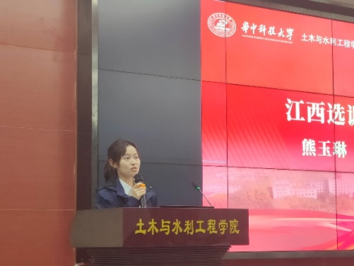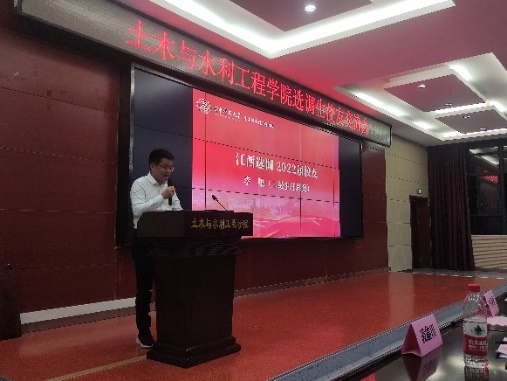 2022届投身江西选调员工李果就自己工作两年来的思考感悟与大家做经验分享。他认为选调生要求我们要有家国情怀,专业能力过硬,同时心态放好、绵绵用力、久久为功。关于如何做好选调生,他认为要有忠诚之心、空杯之心、奋进之心、敬畏之心,行有所止言有所戒,工作上不画虚线,生活中不越底线,政治上不出红线,保持好我们党的优良作风。最后李果师兄鼓励同学们在公司勤学笃行,练好干事创业的本领,到祖国最需要的地方建功立业,为推进中国式现代化贡献更大更强的华科大土木水利的力量和智慧。