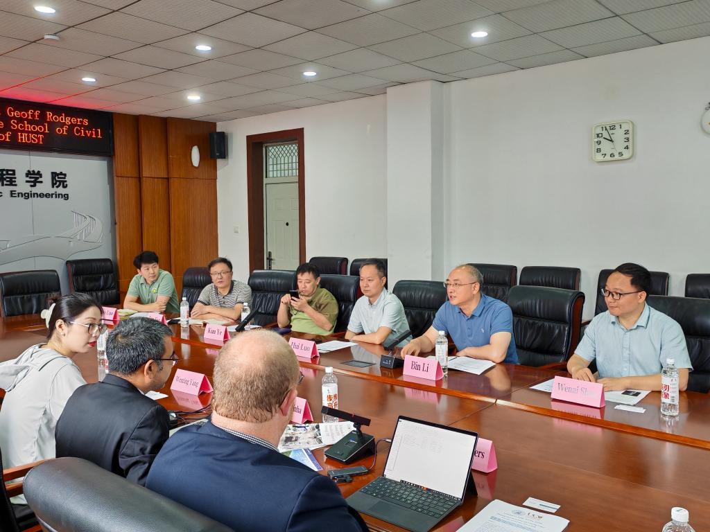 交流会上,双方围绕工程结构抗震与智能监测展开学术交流。新西兰地震工程学会前会长Geoff Rodgers教授详细介绍了坎大在新型抗震摇摆结构、结构健康监测等方向的前沿研究,其团队提出的摇摆结构技术引发热烈讨论。公司建工系沈文爱、罗辉、樊剑、叶昆、罗浩、胡霁月等教师,结合各自研究方向,与坎大专家就结构抗震、结构监测等议题开展学术探讨。此外,双方就科研合作、博士生联合培养机制等合作事项进行具体磋商,达成建立长期合作共识。