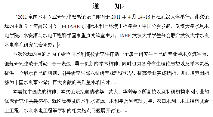 关于报名参加“2011全国水利专业研究生宏禹论坛”的通知
