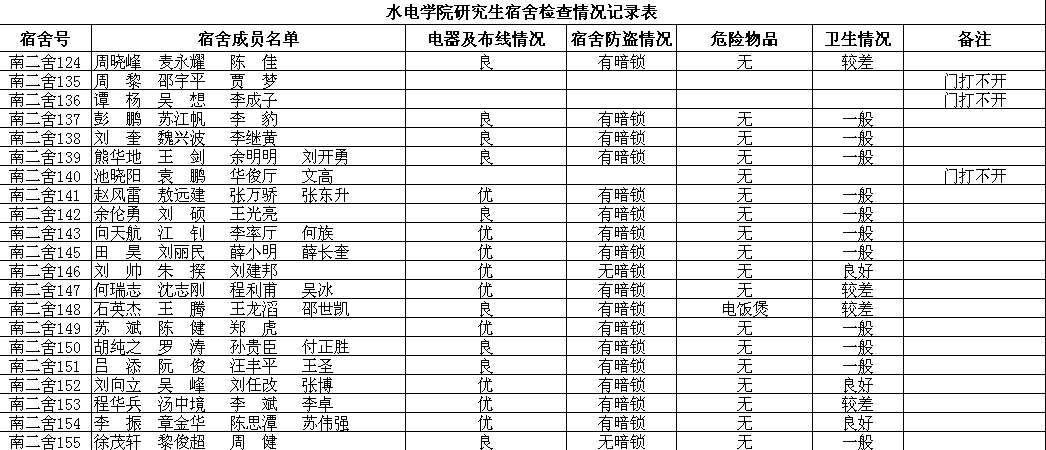 水电公司研究生宿舍消防安全及卫生检查报告(20111116)