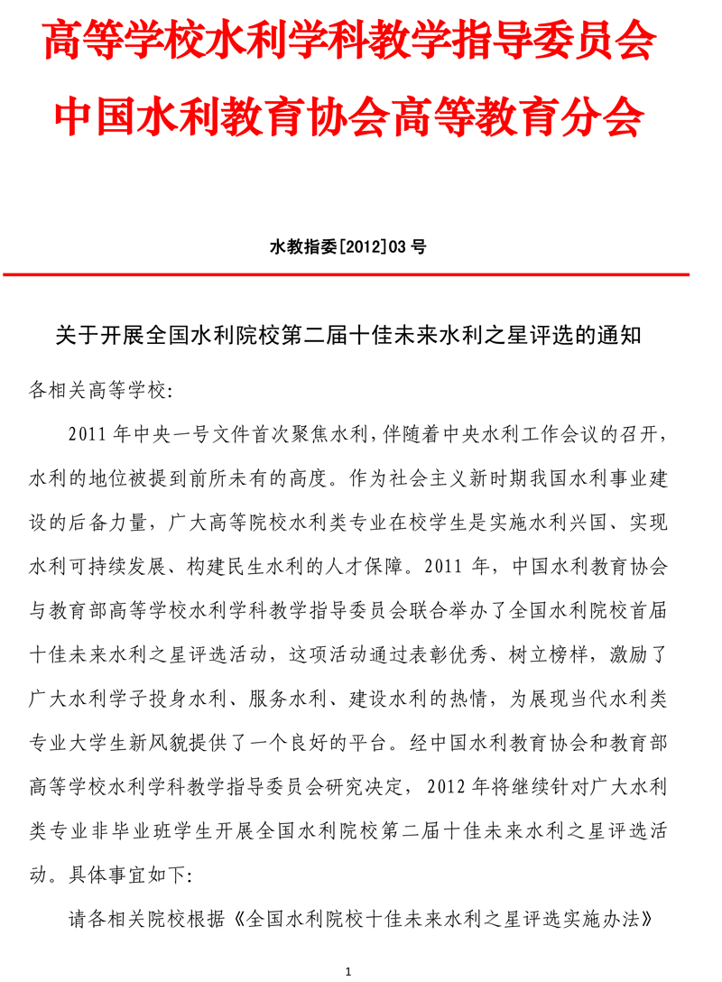 关于开展全国水利院校第二届十佳未来水利之星评选的通知