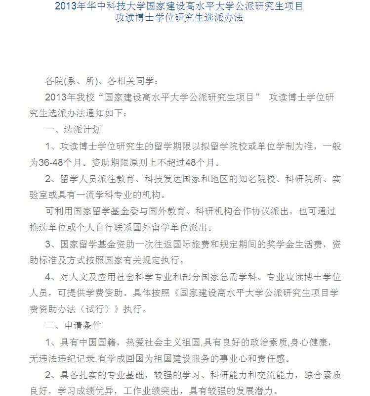 2013年永利官网国家建设高水平大学公派研究生项目攻读博士学位研究生选派办法