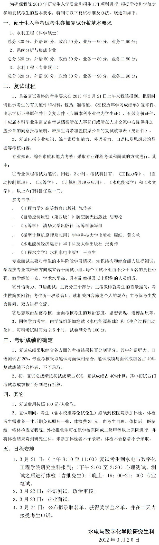 水电与数字化工程公司2013年研究生复试工作细则