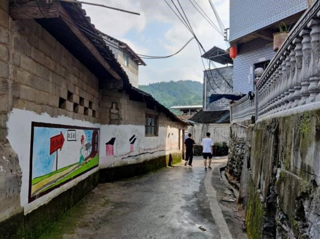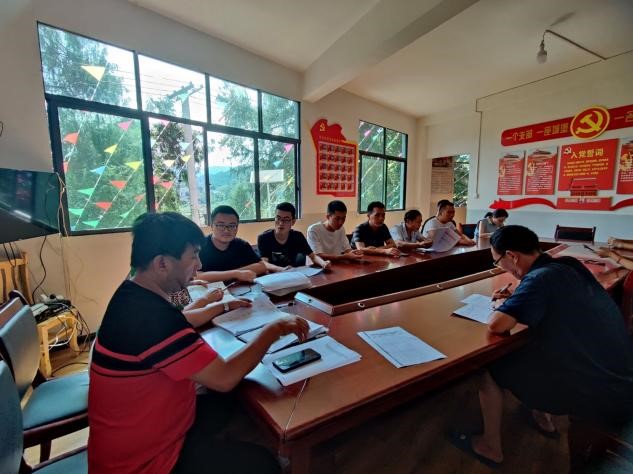 为了更加深入地了解到当地脱贫情况和乡村振兴的相关措施,实践队来到了当地有名的文山村进行考察。在村委会的会议室里,实践队队员与村干部们展开了亲切的交谈。队员们了解到,这些年来,松桃县政府大力发展旅游文化产业并努力保护当地文化遗产,文山村在县政府的号召下,挖掘自身特色传统文化,发展出了以苗绣为代表的特色手工业,同时保护村里的传统文化遗产和名人故居,整修危房危楼,修建基础设施,加大力度建设美丽乡村,并且成功申请到了“国家传统文化村落”名称,获得了上百万国家帮扶资金。