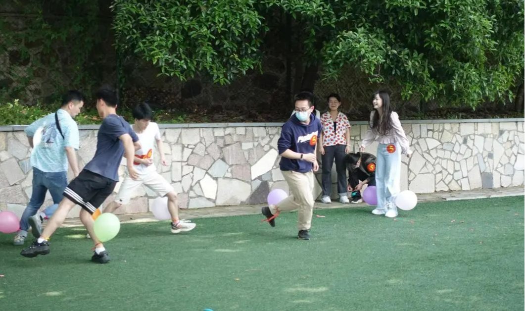 文明其精神,强健其体魄。华中大历来重视体育工作,在两队成员进行对抗性的踩气球比赛中,双方成员个个热情高涨,左躲右闪,身姿矫健,大有誓不夺魁不罢休的气势。此环节不仅为支部成员们创造了运动机会,让大家在欢快的气氛中加强体质锻炼,更是展现出了华中大学子阳光,向上的拼搏精神。