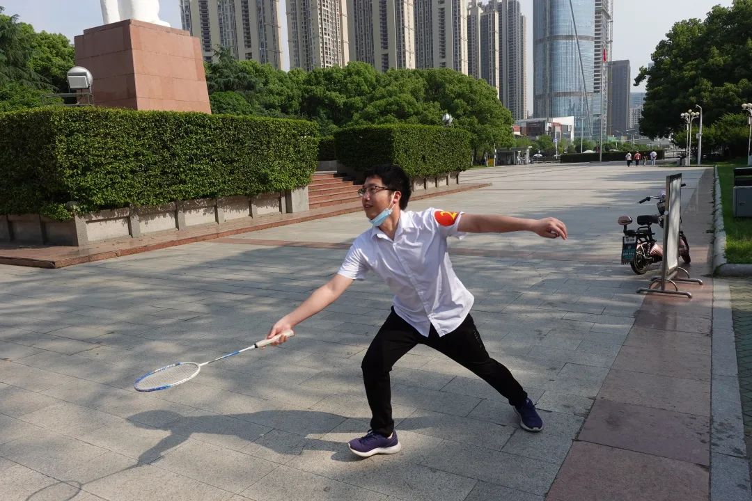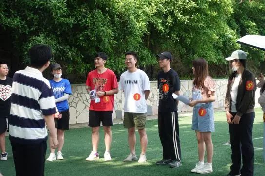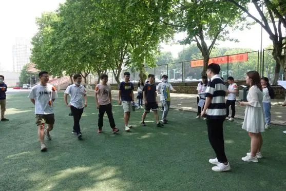 巧用体育运动,培育协作精神。体育不仅考验个人能力,更考验团队协作精神。各小组需要合作用羽毛球拍连续接七次羽毛球,用时最少的队伍获胜。各小组一到达就迫不及待地展开活动,尽管部分同学一直掉球,每个小组仍不放弃。七十年来,华中大校大门前走走停停,更迭的是一代代青年,不变的是他们身上永不言弃、协作向前的无畏精神。