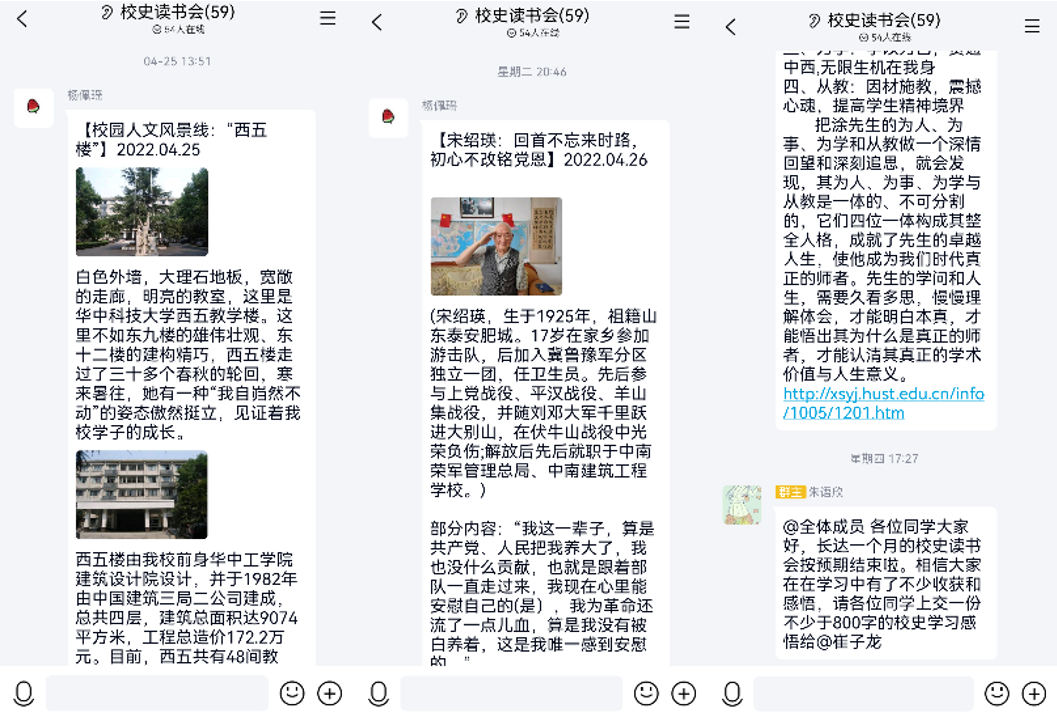 各党支部在党支书及支委的引领下,通过讲授微党课、参观公司老建筑及校史展览、学习先进人物及先进精神、定期开展读书会以及举办校史知识竞赛等方式开展各具特色的校史学习活动。与此同时,公司党务中心也积极响应,开展了“校史环游记”、“校史上的今天晨读”、“同上一堂微党课,共庆校庆70载”等活动,开设线上“学·史”专栏,带动公司研究生积极学习校史,感知公司历史文化的厚重,为广大师生提供校史学习的平台。